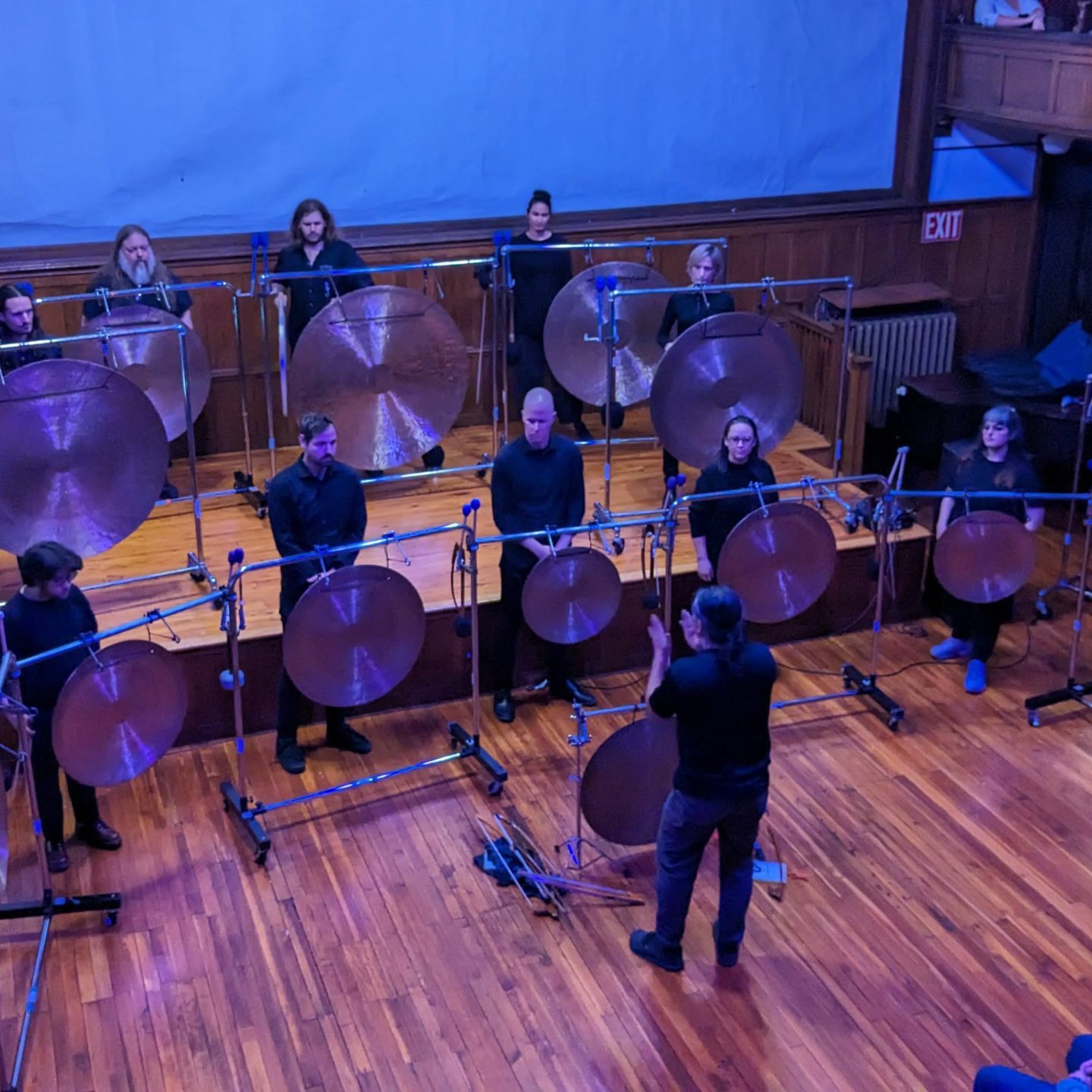 An example that ties these elements together: one of the most recent performances hosted by Fire Museum that I attended was the Nakatani Gong Orchestra. I attended the concert thinking about how a gong orchestra could create interesting sonic experiences with only 16 gongs. As a composer, I know that gongs are delicate instruments that can be easily overplayed. Additionally, gongs are expensive and difficult to transport, so contemporary composers rarely have the opportunity to write music using them. Imagine my surprise when I saw 16 gongs on stage, all being played by a single musician!